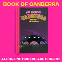 A super deluxe book of over 300 Canberra drawings by Trevor Dickinson collected together for the first time. Representing sketchbooks, commissions, screen prints, bus shelters and recent work, all accompanied by Mister Dickinson’s comments and thoughts about Canberra and the work the city has inspired over the past ten years.