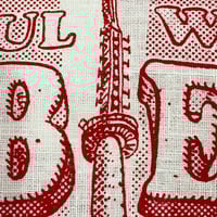"I printed this tea towel in my backyard. There may be the occasional ink spot, fingerprint, bleed or faded area. This is normal and should be embraced as having been touched by my very human hand."